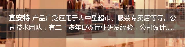 宜安特专注于商品电子防盗系统(EAS)系列产品研发生产12年,引进国际先进技术,产能充足,遍销国内外。